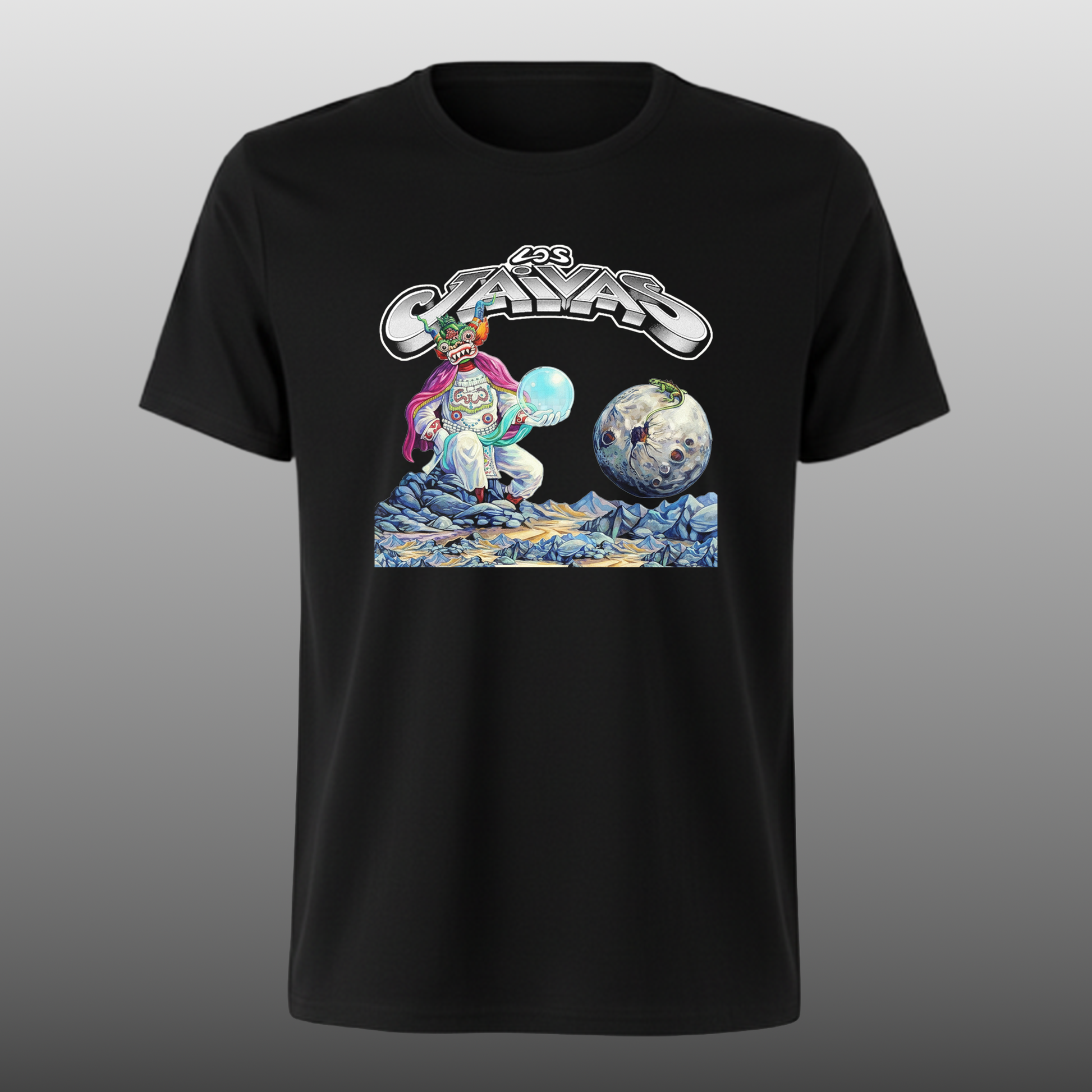Esta prenda encapsula la visión cósmica de Los Jaivas, fusionando el rock progresivo con la mística y los instrumentos ancestrales andinos. El vibrante arte evoca un viaje interdimensional, donde el folclore chileno se encuentra con la fantasía espacial. Es un tributo a la banda que musicalizó a Neruda y cuyo legado es la banda sonora del continente.