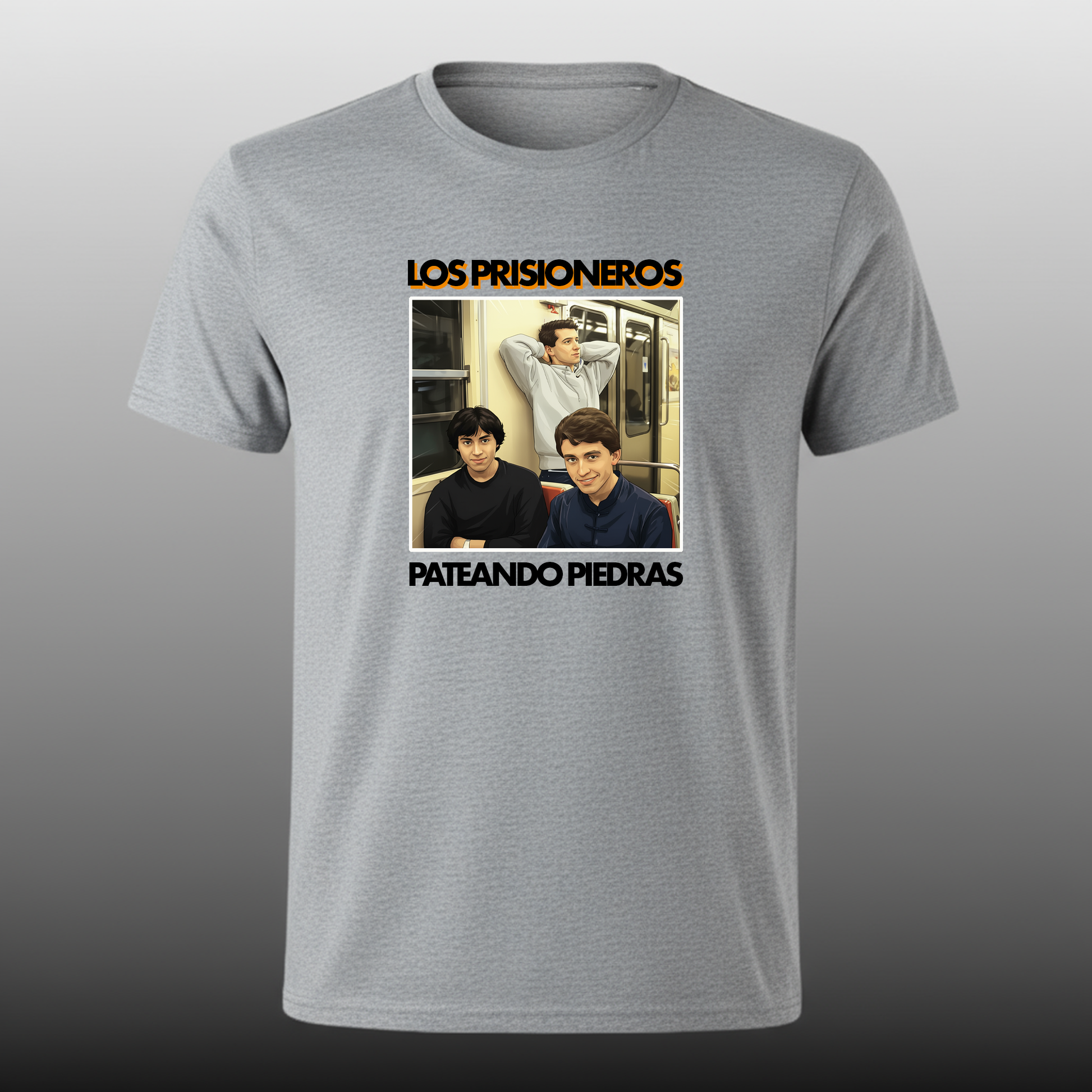 Esta prenda es un homenaje a la icónica portada de Pateando Piedras, el álbum que consolidó a Los Prisioneros en el rock latino. La imagen, tomada en el Metro de Santiago, evoca la conexión con el Chile popular y la juventud que no tenía más que "patear piedras". Representa los himnos de la desigualdad y la alienación que persisten como un estandarte de la crítica social.
