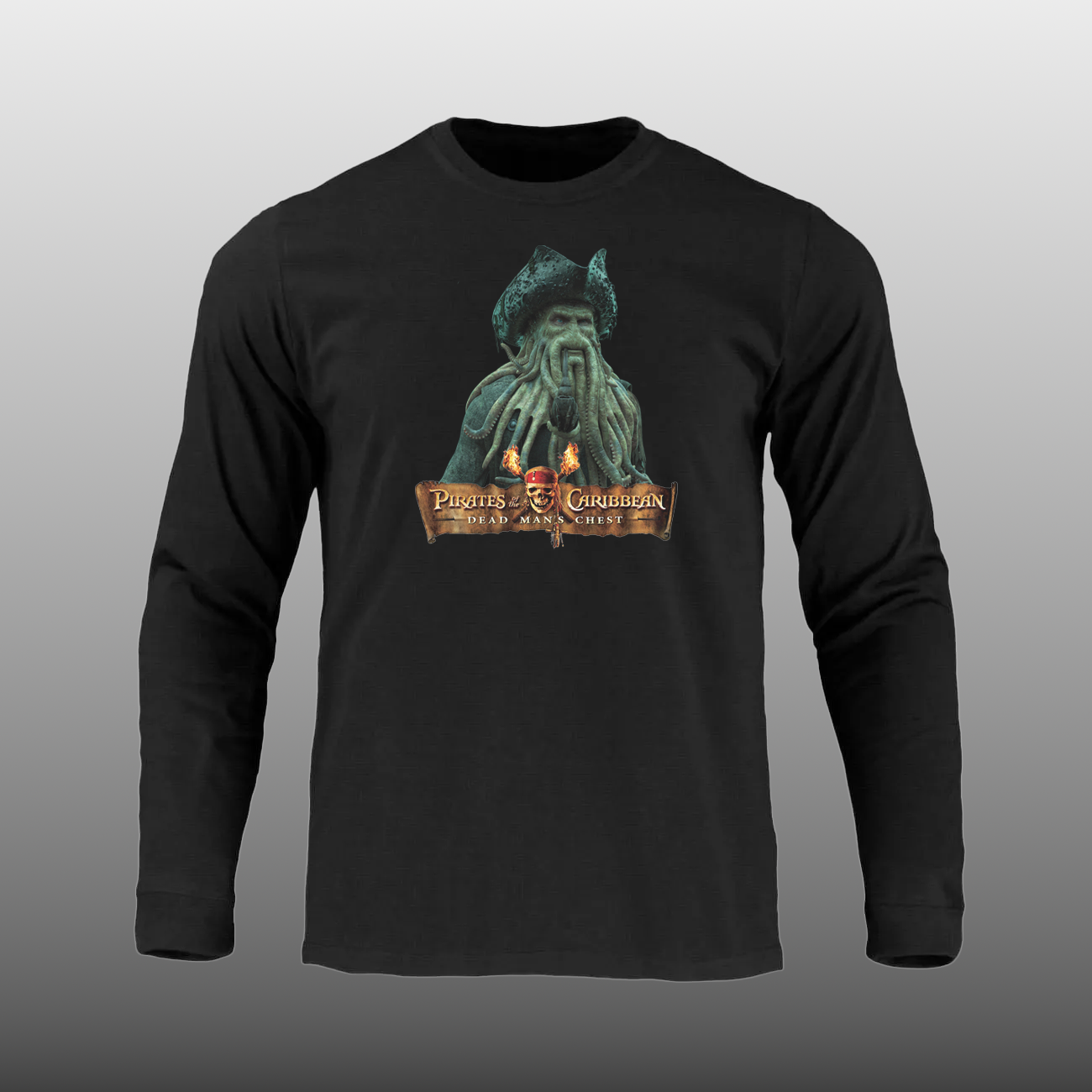 Si tienes un corazón que late al ritmo del mar, esta polera es para ti. Rinde homenaje al formidable Davy Jones, el capitán del Holandés Errante, uno de los villanos más icónicos de la saga de Piratas del Caribe.