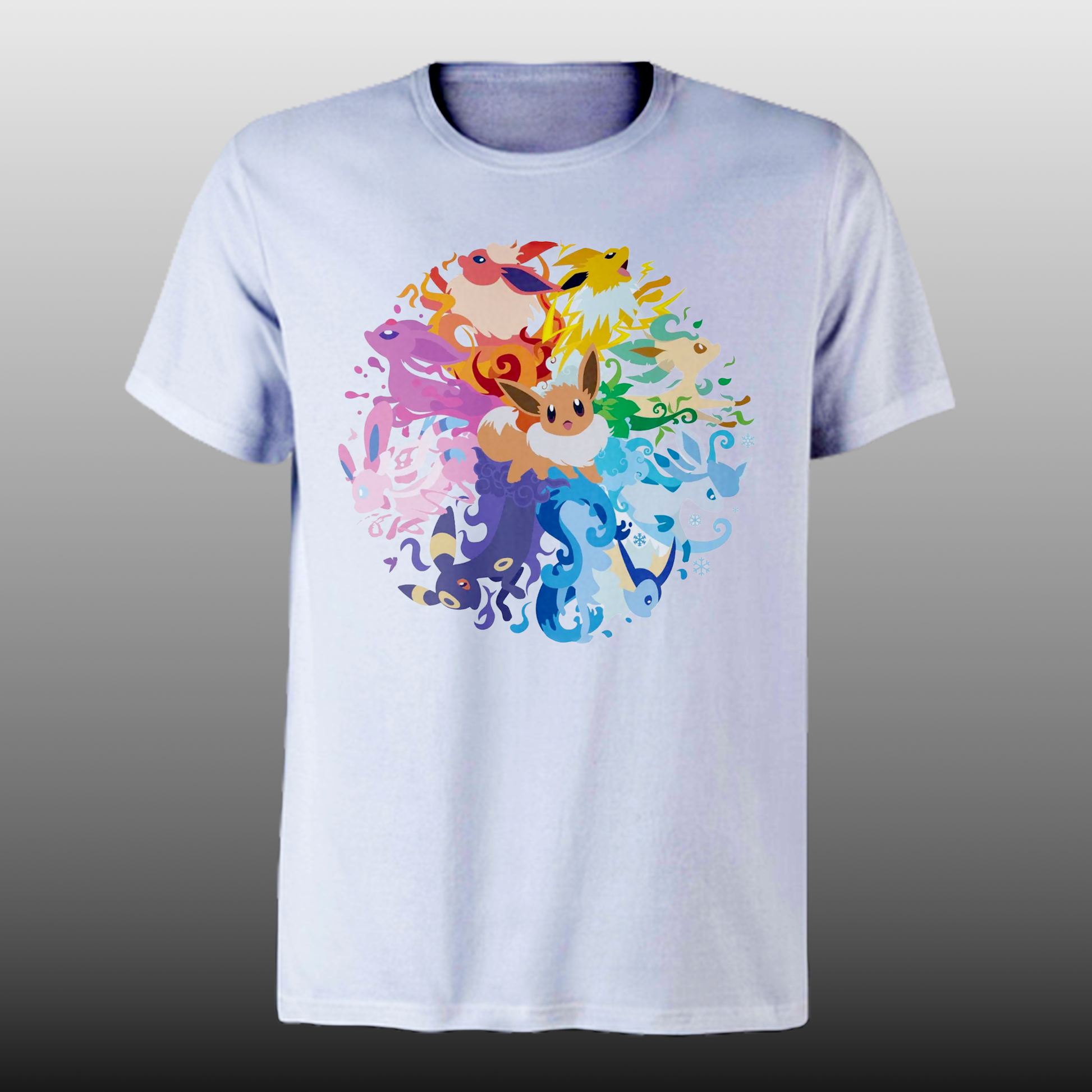 Esta polera celebra la versatilidad y la belleza de las Evoluciones de Eevee (Eeveelutions) en un vibrante círculo cromático lleno de energía. El diseño evoca la conexión con la naturaleza y la infinidad de caminos que puede tomar el crecimiento y la amistad. Es perfecta para trainers que aprecian la diversidad, el color y la ternura del universo Pokémon.