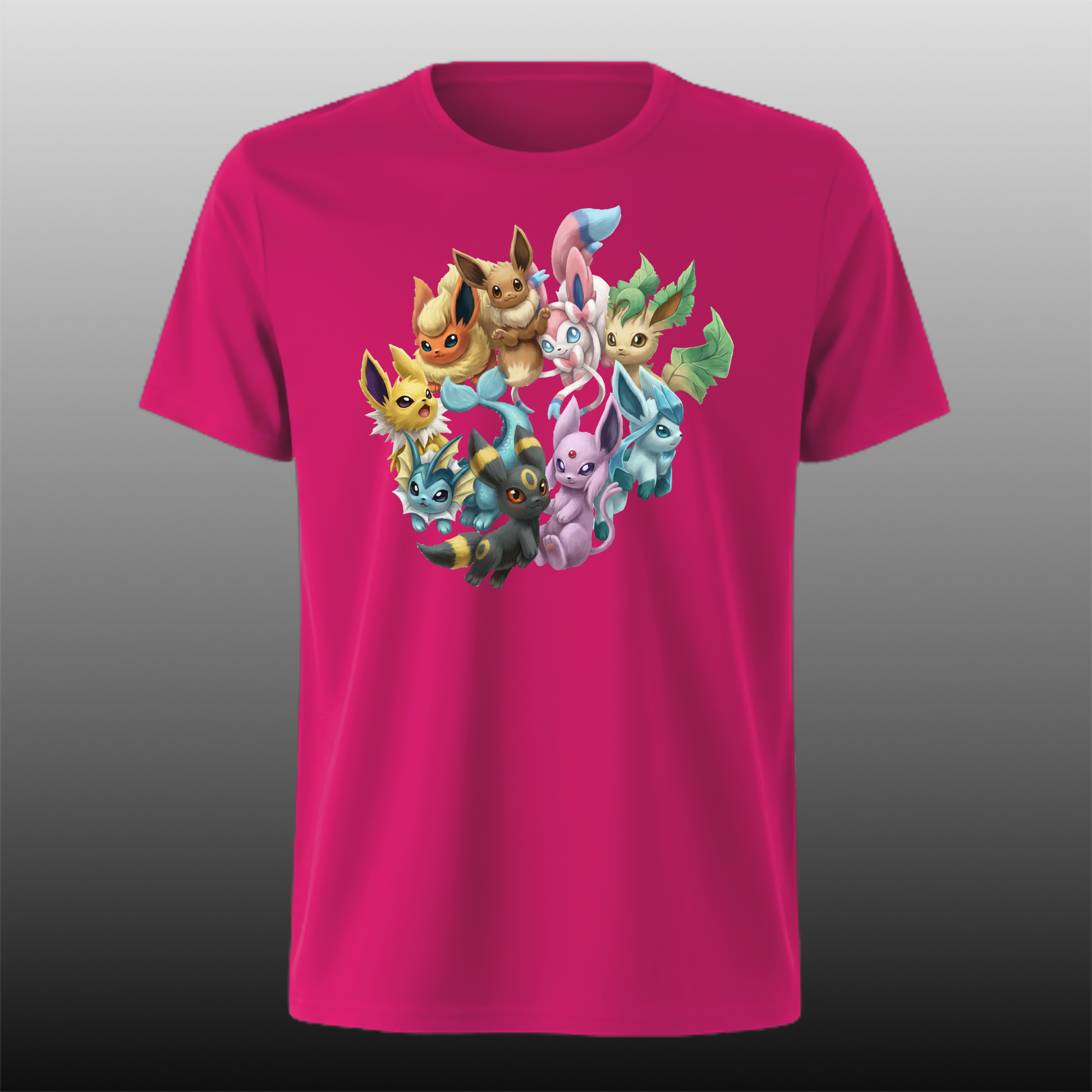 Esta polera celebra la belleza y el lazo de amistad entre Eevee y todas sus majestuosas evoluciones en un diseño agrupado y vibrante. El color de fondo evoca la ternura y la feminidad del tipo Hada, mientras que los Pokémon irradian energía y cariño. Es un manifiesto de la lealtad y el potencial ilimitado de transformación en el mundo Pokémon.