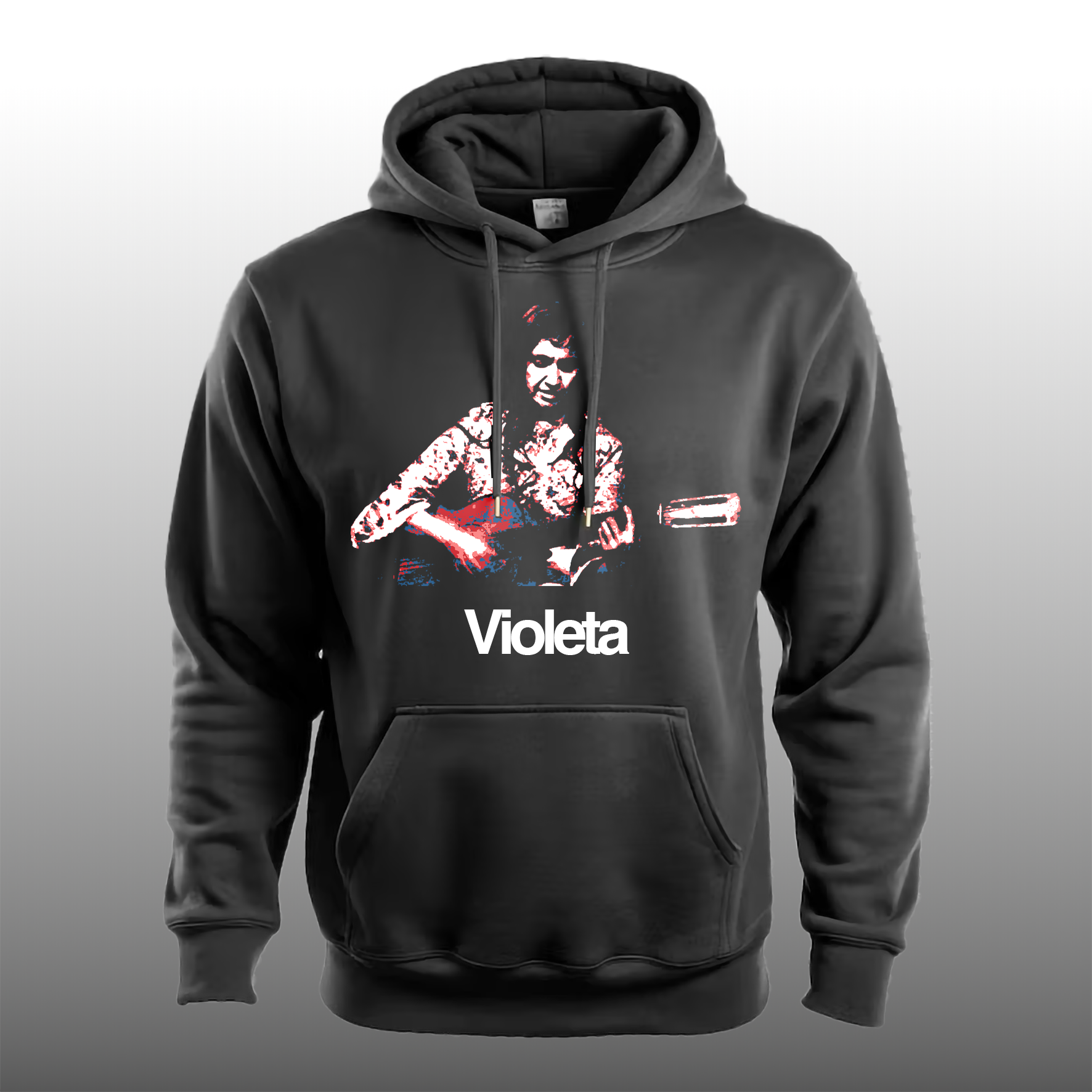 Lleva la esencia del folclore y la fuerza de la creación con este polerón de Violeta Parra. Un diseño lleno de color y vida que celebra a la artista total que revolucionó la música y el arte en Chile.